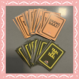 DrameBaaz! is the perfect opportunity to display your acting chops. There are 10 General cards and 90 Language specific cards.
