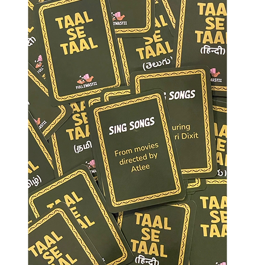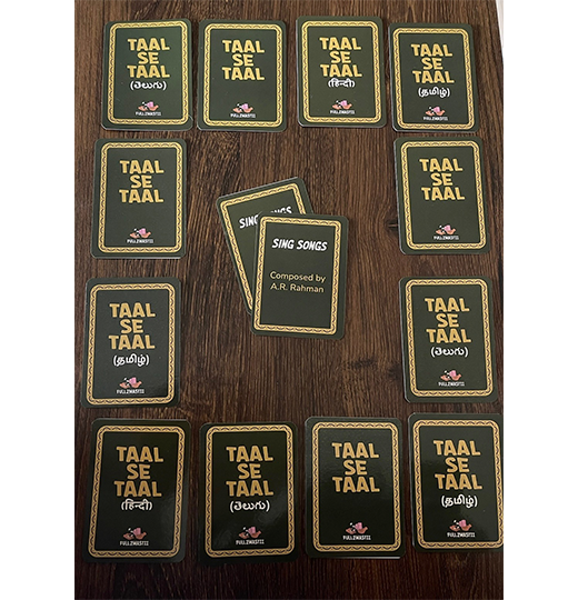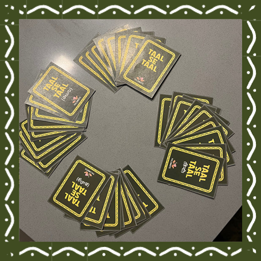 Taal se Taal is the ultimate game to test your musical knowledge. The deck consists of 100 fun and unique prompts. There are 50 General cards and 50 Language specific cards. You can choose up to two languages.